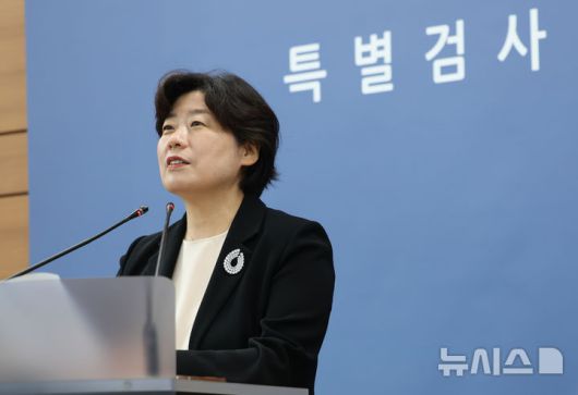[서울=뉴시스] 황준선 기자 = 박지영 내란 특검 특검보가 8일 오후 서울 서초구 고등검찰청에 마련된 내란 특검 사무실에서 정례 브리핑을 하고 있다. 2025.07.07. hwang@newsis.com |