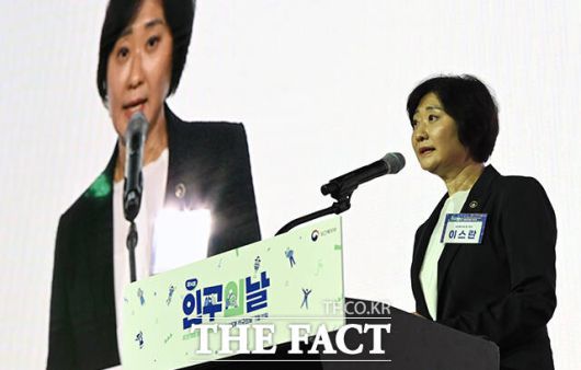 [더팩트ㅣ임영무 기자] 이스란 보건복지부 제1차관이 11일 오후 서울 서초구 JW메리어트호텔에서 열린 '제14회 인구의 날' 기념행사에 참석해 기념사를 하고 있다.