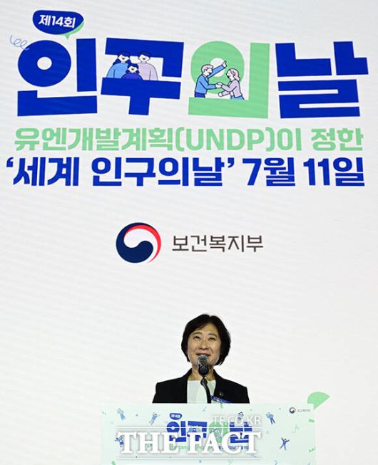 [더팩트ㅣ임영무 기자] 이스란 보건복지부 제1차관이 11일 오후 서울 서초구 JW메리어트호텔에서 열린 제14회 인구의 날 기념행사에 참석해 기념사를 하고 있다.