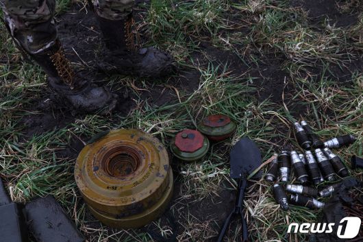 12일(현지시간) 우크라이나 도네츠크 북부에서 우크라이나군 지뢰제거대가 발견한 지뢰의 잔해들. 22.12.12 ⓒ 로이터=뉴스1 ⓒ News1 김예슬 기자 |