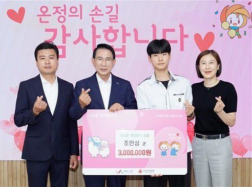 서산시는 11일 조씨 부부와 고등학교 3학년인 아들 민성(18) 군이 전날 서산시에 성금을 전달했다고 밝혔다. 조씨 가족은 2008년 민성 군의 돌잔치 비용을 기부한 것을 시작으로 18년 동안 매해 아들의 생일 때마다 300만원씩 이웃돕기 성금을 냈다. 민성 군도 중학생이 되고부터 용돈을 모아 성금에 보탰다. 해마다 300만원씩 18년간 기부한 금액은 5400만원이다.