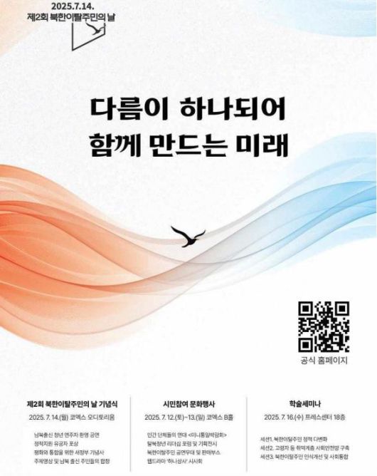 [서울=뉴시스] 남빛나라 기자 = 통일부는 '제2회 북한이탈주민의 날'(7월14일)을 계기로 기념식 등 다양한 행사가 전국 각지에서 열린다고 11일 밝혔다.