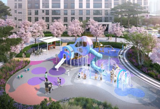 이 외에도 모든 블록에는 수공간이 중심부에 배치되고, 각 단지마다 특색 있는 물놀이터와 테마가든이 조성된다. 벚나무, 느티나무 등 다양한 수종을 활용한 풍부한 식재와 단지를 부드럽게 연결하는 순환형 산책로는 도심 속에서도 자연을 누릴 수 있는 여유로운 보행환경을 제공할 예정이다.