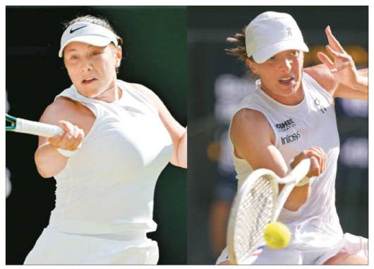 윔블던 테니스 여자단식 결승에서 맞붙는 어맨다 아니시모바(왼쪽)와 이가 시비옹테크. |