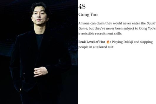 제임스 딘, 말론 브란도, 페드로 파스칼, 헤이든 크리스텐슨 등이 언급된 가운데, 공유는 48번째로 소개됐다.