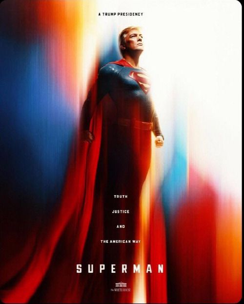 '슈퍼맨' 트럼프 백악관이 10일 공식 SNS 계정에 슈퍼맨의 모습을 한 도널드 트럼프 미국 대통령의 이미지를 올렸다. 이는 신작 영화 '슈퍼맨'의 포스터에 트럼프 대통령의 모습을 합성한 것으로, 온라인에서 뜨거운 찬반 논란을 불러일으켰다. 백악관 엑스 캡처 |