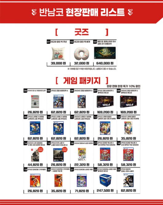 이외에도 반다이남코 엔터테인먼트의 타이틀과 MD의 현장 판매, 소정의 기념품을 증정하는 이벤트 등을 진행한다. 소장 욕구를 자극하는 스페셜 경품 등 다양한 콘텐츠와 즐길 거리가 여러분을 기다린다.