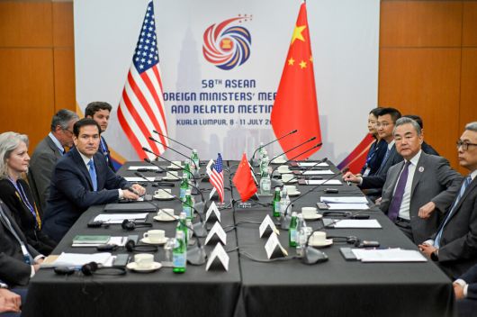 11일(현지시각) 마코 루비오 미국 국무장관과 왕이 중국 공산당 중앙외사판공실 주임 겸 외교부장이 말레이시아 쿠알라룸푸르에서 첫 회담을 가졌다. 기념 촬영만 하고 모두 발언을 따로 공개하지는 않았다. 회담은 9~11일 말레이시아 쿠알라룸푸르에서 열리는 제58차 동남아시아국가연합(아세안) 외교장관회의 계기에 열렸다.