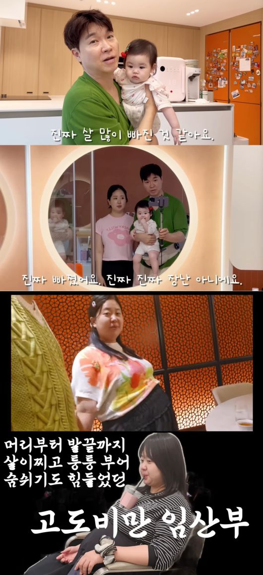 김다예는 살이 찌고 부어 숨쉬기 힘들었던 고도비만 임산부였다고 자신을 소개하며 임신 전보다 40kg가 찐 90kg의 몸으로 출산을 했음을 밝혔다.
