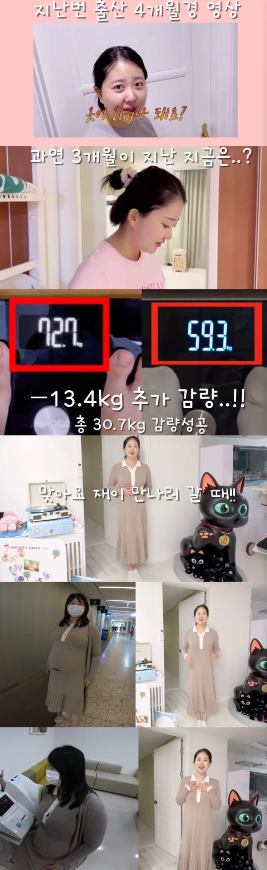 출산 후 4개월 당시 다이어트 중이던 김다예는 72kg였던 몸무게를 공개한 바 있다. 이어 영상에는 그후로 또 3개월이 지난 현재 몸무게가 공개됐다.