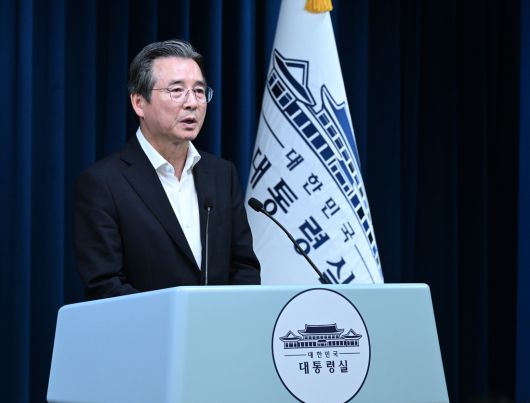 김용범 정책실장이 10일 서울 용산 대통령실에서 RE100 산단 관련 브리핑을 하고 있다. 대통령실사진기자단 |