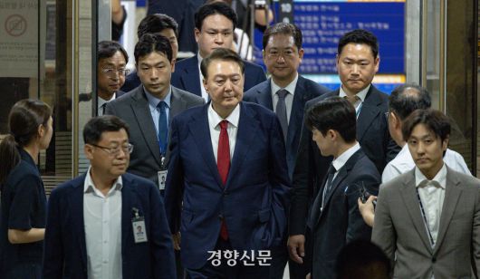윤석열 전 대통령이 지난 9일 서울 서초구 서울중앙지법에서 열린 2차 구속 전 피의자 심문(영장실질심사)을 마친 뒤 서울구치소로 향하고 있다. 문재원 기자 |