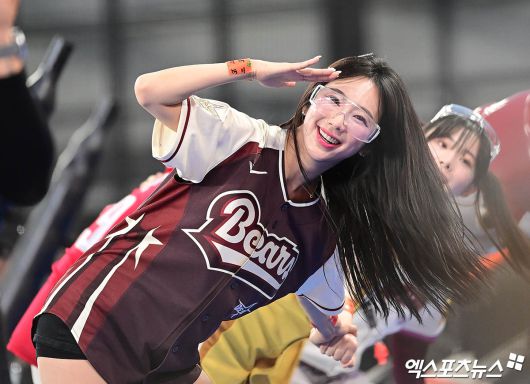 (엑스포츠뉴스 대전, 박지영 기자) 11일 오후 대전한화생명볼파크에서 열린 '2025 신한 SOL Bank KBO 퓨처스 올스타전' 남부리그와 북부리그의 경기, 치어리더 이미래가 열띤 응원을 펼치고 있다.박지영 기자 jypark@xportsnews.com