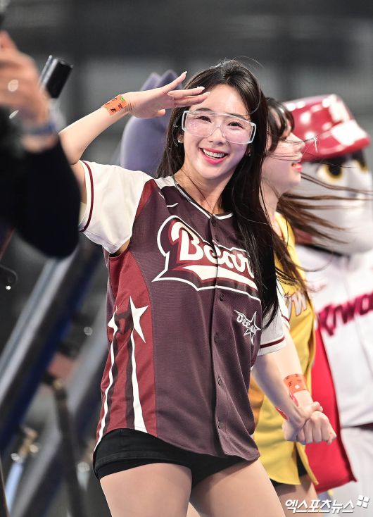 (엑스포츠뉴스 대전, 박지영 기자) 11일 오후 대전한화생명볼파크에서 열린 '2025 신한 SOL Bank KBO 퓨처스 올스타전' 남부리그와 북부리그의 경기, 치어리더 이미래가 열띤 응원을 펼치고 있다.박지영 기자 jypark@xportsnews.com