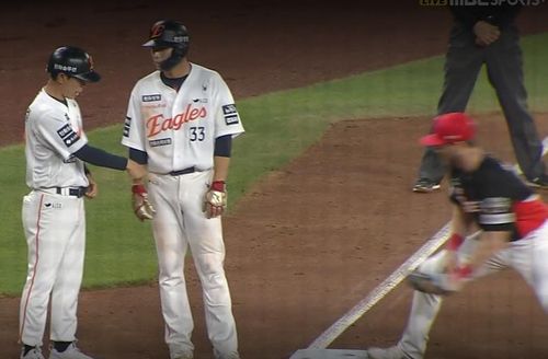이때 2루 주자 유로결은 3루로 향한 뒤 베이스에서 발을 뗀 채 김재걸 3루 코치와 대화를 나눴다.