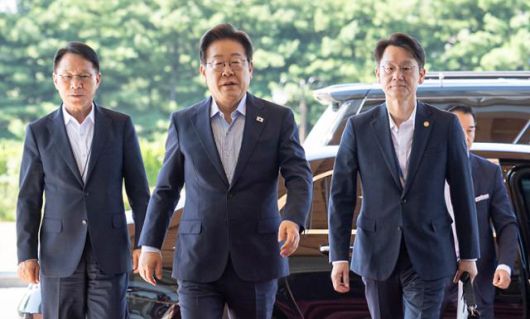 이재명 대통령이 11일 오전 서울 용산 대통령실로 출근을 하고 있다. 왕태석 선임기자 |