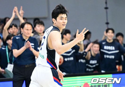 3쿼터, 한국 유기상이 3점슛을 성공시킨 뒤 기뻐하고 있다. 2025.07.11 / dreamer@osen.co.kr