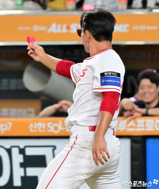 (엑스포츠뉴스 대전, 김한준 기자) 11일 오후 대전한화생명볼파크에서 열린 '2025 신한 SOL Bank KBO 퓨처스 올스타전' 남부리그와 북부리그의 경기, 7회말 북부 이율예가 등장 퍼포먼스를 선보이고 있다.김한준 기자 kowel@xportsnews.com
