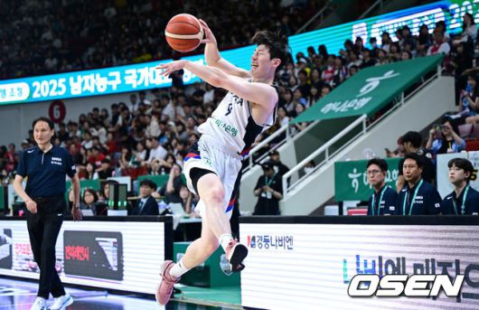 에이스 이현중은 합류는 확실한 도움이 됐다. 이현중은 네 명 사이로 뚫고 들어가 몸싸움을 거친 뒤 레이업슛을 올려놨다. 신체균형이 무너진 상황에서도 끝까지 집중해서 골을 넣었다. 한국선수들 중에서도 보기 힘든 유형의 득점루트였다.