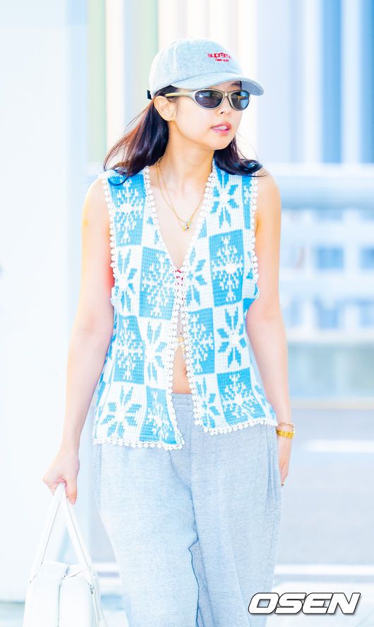 블랙핑크 제니가 출국길에 포즈를 취하고 있다. 2025.07.11 / rumi@osen.co.kr