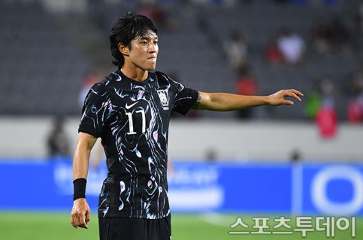 [용인(경기)=스포츠투데이 팽현준 기자] 11일 용인미르스타디움에서 열린 2025 EAFF E-1 챔피언십(동아시안컵) 대한민국과 홍콩의 경기, 후반 한국 정승원이 공격 시도 후 아쉬운 표정을 짓고 있다. 2025.07.11. [스포츠투데이 팽현준 기자 sports@stoo.com]