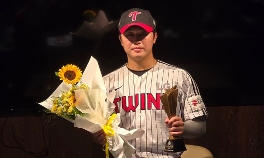 11일 대전 중구 대전한화생명볼파크에서 열린 2025 KBO리그 올스타 프라이데이 퓨쳐스 올스타전 남부올스타와 북부올스타의 경기에서 MVP를 차지한 북부 손용준(LG)이 수상 후 기념촬영을 하고 있다. 뉴시스 |