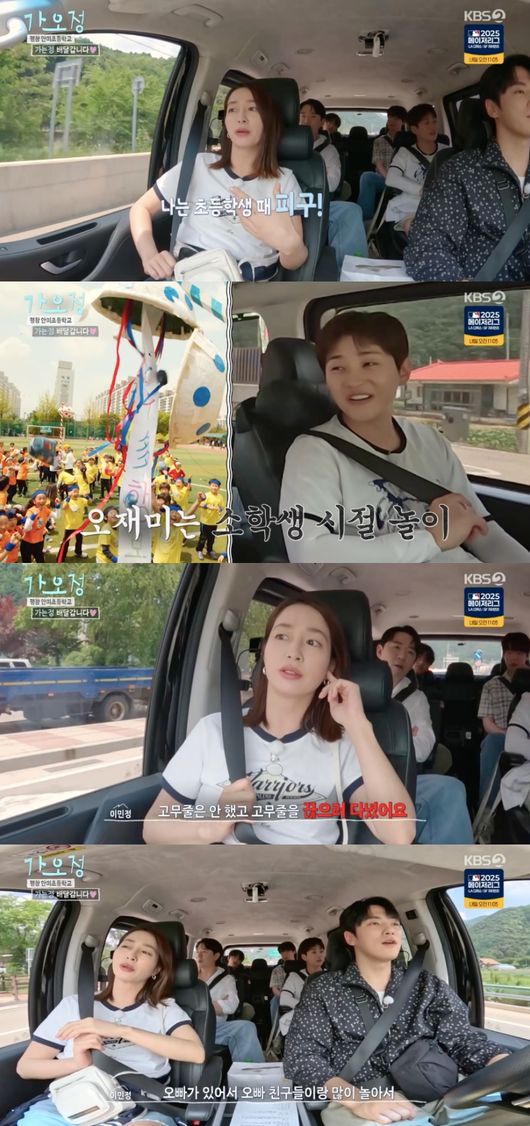 이날 이민정은 “초등학교 때 다들 뭐하면서 노는 거 좋아했냐”라고 물으며 “나는 초등학교 때 피구 (좋아했다)”라고 말했다. 안재현은 “발야구 같은 것도 있었다”라고 했고, 붐은 “오재미 한 사람은 없냐”라고 되물었다.