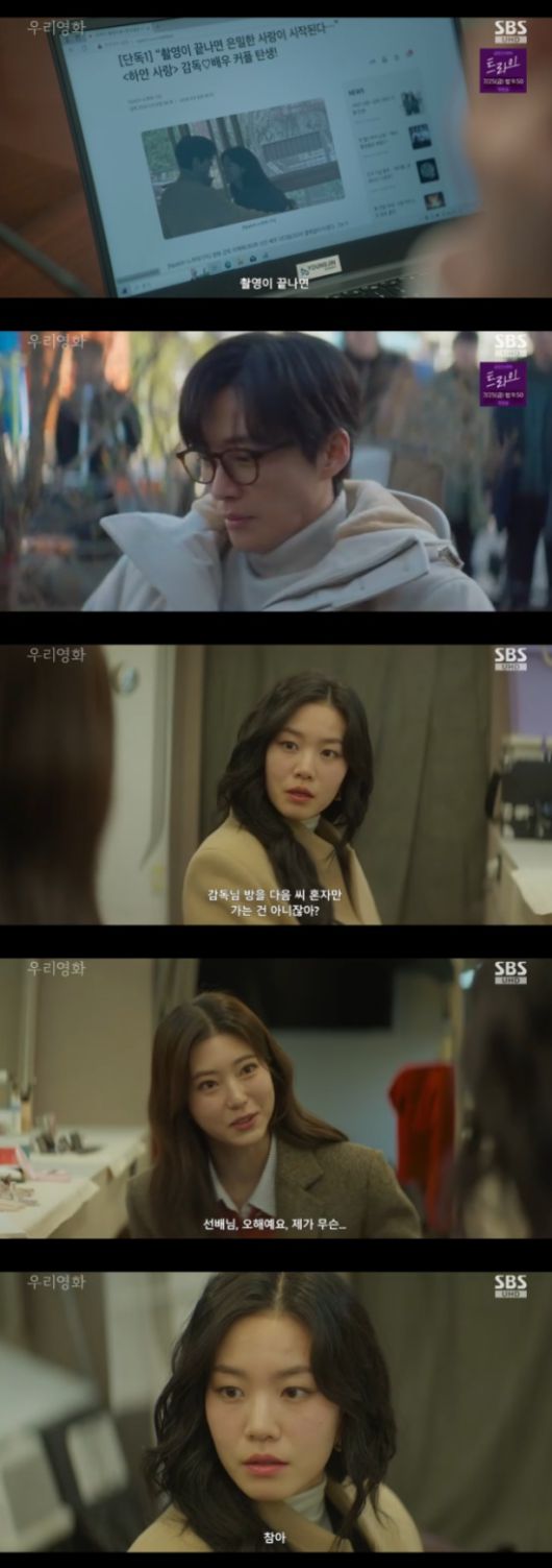 11일 방송된 SBS 금토드라마 '우리영화' 9회에서는 이제하(남궁민 분)와 이다음(전여빈)의 스캔들 기사가 났다.