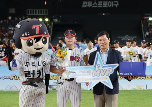 프로야구 퓨처스 올스타전 MVP를 수상한 LG 손용준(가운데). [뉴스1] |