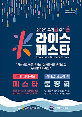 농협경기본부(본부장 엄범식)는 쌀 소비 촉진과 쌀 가공식품 산업 활성화를 위해 '2025 우리쌀 우리술 K-라이스페스타' 에 참가할 도내 업체를 모집한다고 11일 밝혔다.