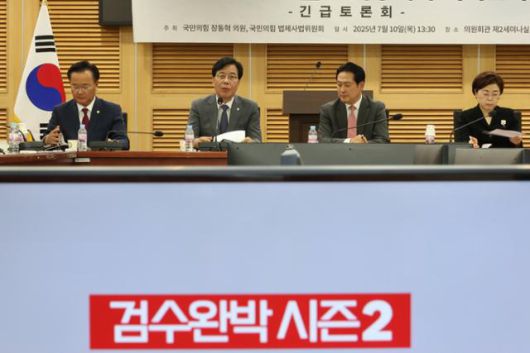 송언석 국민의힘 비상대책위원장은 어제 원내대책회의에서 “검찰개혁처럼 중요한 사안은 속도보다 방향이 더 중요하다”며 국회 사개특위 구성을 제안했다. “민주당이 속도전에 매몰돼 무리한 입법 폭주를 강행한다면 그 피해는 고스란히 서민과 약자의 몫이 된다”고도 했다.