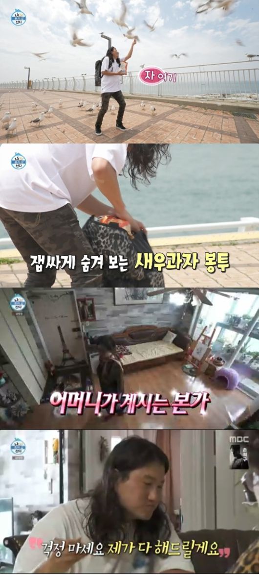 기안84는 갈매기들에 둘러싸인 임우일을 두고 "비둘기 아줌마 같다"고 말했다.