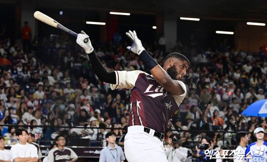 디아즈는 11일 대전 한화생명 볼파크에서 열린 2025 신한 SOL Bank KBO 올스타전 '컴투스프로야구 홈런더비'에 참가해 우승과 비거리상을 싹쓸이했다. 이우일 1군 매니저와 호흡을 맞춘 디아즈는 8m의 몬스터월의 존재감이 무색하게 시원한 홈런을 펑펑 터뜨렸다.