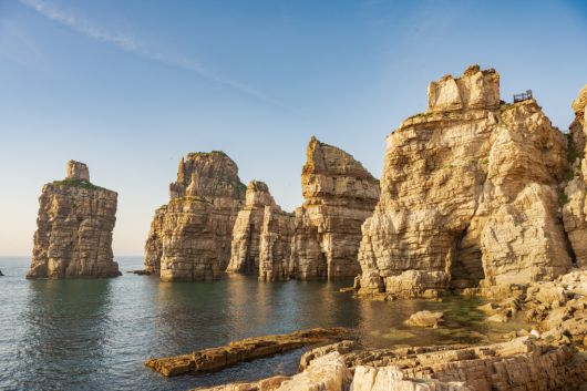 농여해변은 대청도에 갈 때마다 가장 먼저 들르게 되는 스폿이다. 여행에 대한 기대를 첫술에 만족시킬 만큼 빼어난 풍광을 지니고 있다. 퇴적과 풍화작용의 결정판 나이테바위, 연흔바위 그리고 물이 빠지면 자연스레 만들어지는 풀등도 이곳 해변의 솜씨다. 게다가 최근에는 주차장 내에 포토존과 배 조형물에 지질공원 탐방안내소까지 설치됐다. 여행객의 즐거움과 편의를 위한 시설이면서도, 자연과 일정한 거리를 유지하고 있는 것에 미소가 지어졌다.