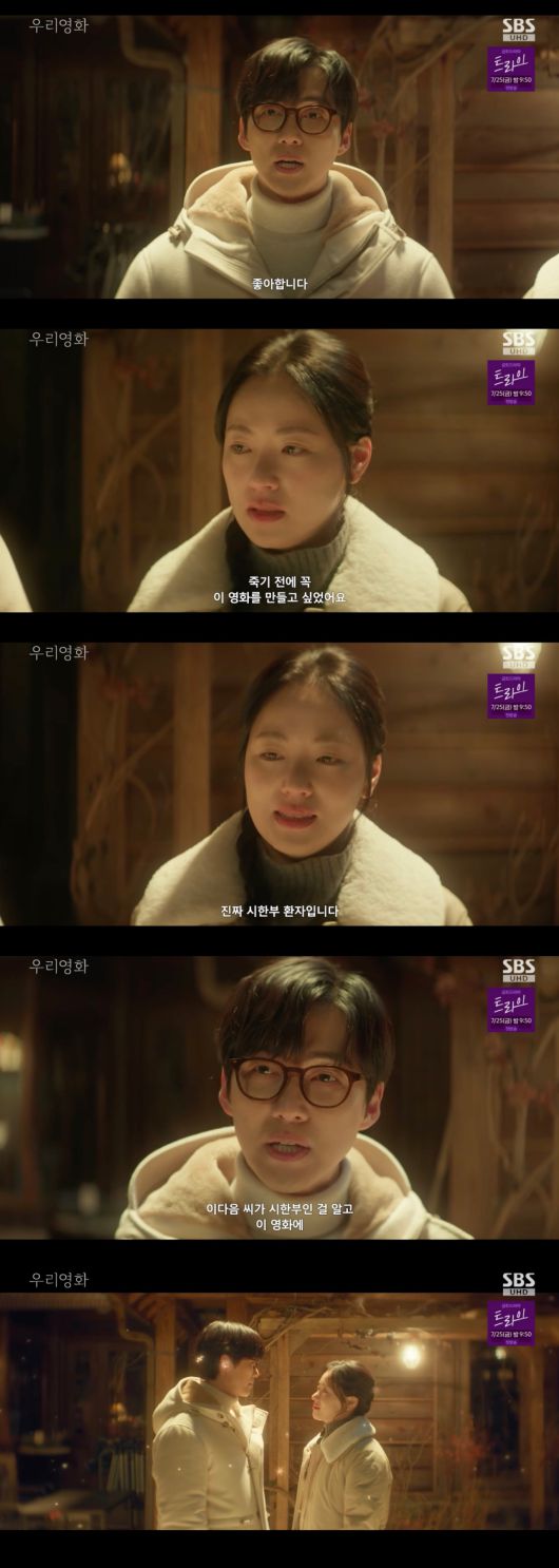 그리고 이다음은 "저는 시한부입니다. 이 영화가 제 생애 마지막 영화입니다. 저는 시한부를 연기하는 진짜 시한부 환자입니다"라고 모두에게 그동안 감췄던 진실을 밝혔다.