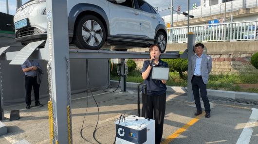 10일 부산 해운대검사소에서 임피던스 기반 배터리 성능(SOH) 평가를 시연하고 있는 모습. 교통안전공단 제공 |