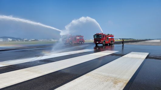 이러한 살수 작업에 사용되는 장비는 총 8대이고, 물은 소방수를 사용하는데요. 한 번에 뿌리는 양이 활주로는 4만 4000ℓ, 계류장은 4만ℓ에 달합니다. 도합 8만 4000ℓ로 이를 흔히 마시는 500㎖ 용량의 생수로 환산하면 무려 16만 8000병에 해당합니다.