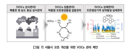보고서는 “시는 오존 농도에 직접 영향을 주는 VOCs 화학종을 우선 관리해야 하며 배출 저감 조치를 강화해야 한다”며 “여름철 고농도 오존 발생시기에 VOCs 배출량을 관리해야 한다”고 지적했다.
