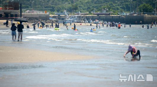 [부안=뉴시스] 김얼 기자 = 연일 무더위가 기승을 부리고 있는 5일 전북 부안군 변산해수욕장을 찾은 시민들이 물놀이를 하며 더위를 식히고 있다. 2025.07.05. pmkeul@newsis.com |