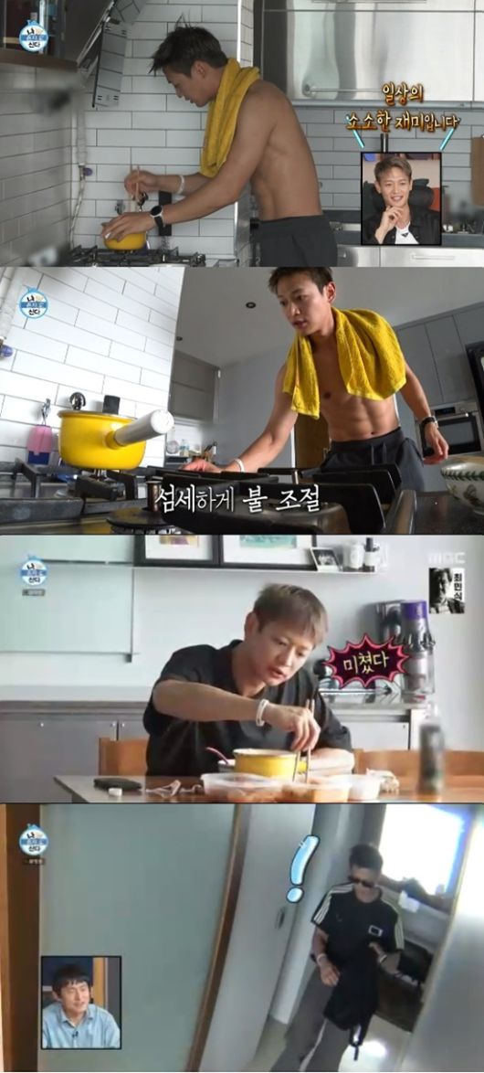 민호는 주방을 한 번 스캔하더니 갑자기 방으로 뛰어들어가 궁금증을 자아냈다. 전현무는 민호의 이상행동에 "쟤 더위 먹었다"고 말했다.