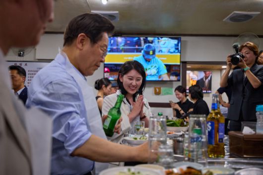 같은 날 저녁, 이 대통령은 서울 종로구의 한 식당에서 대통령실 참모들과 삼겹살과 소맥으로 저녁 식사를 했다. 앞치마를 두르고 소맥을 직접 만드는 소탈한 모습을 보였다.