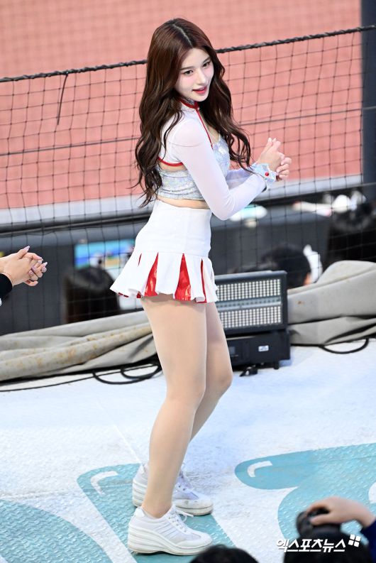 (엑스포츠뉴스 수원, 김한준 기자) 11일 오후 수원KT위즈파크에서 열린 '2025 신한 SOL Bank KBO리그' 삼성 라이온즈와 KT 위즈의 경기, 이예빈 치어리더가 멋진 공연을 선보이고 있다.김한준 기자 kowel@xportsnews.com