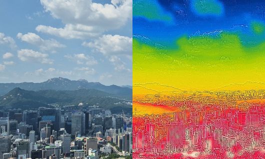서울 남산에서 바라본 도심 모습을 열화상 카메라로 촬영한 모습. 연합뉴스 |