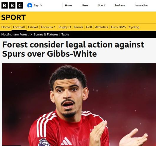 영국 유력지 '가디언'도 "모건 깁스-화이트는 노팅엄 포레스트가 법적 조치를 고려하면서 토트넘 이적이 보류됐다"라고 보도했다.