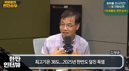 ◆ 김해동> 포텐셜을 얘기하는 거, 포텐셜. 그래서 지난번에 김현정 뉴스쇼 나갔는데 그 얘기를 했었고 그런데 그러면 40도 갑니까라고 얘기를 하는데 요즘 40도는 전 세계적으로 보면 그렇게 놀라운 더위는 아니니까 그래서.