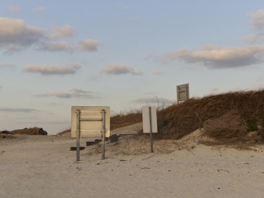 전시는 미술관 세 개 층에서 진행된다. 2층에 걸린 12점의 작품이 사진전 제목과 같은 타이틀로, 나머지 4점은 ‘풀밭 위의 구두’로 구별 지었다. 1층에서는 제주 해변의 일출과 일몰을 기록한 영상 ‘해변에서’가 방영된다. 지하는 높이 220cm의 대형 패널로 구성된 ‘윌더’ 4점이 전시됐다. 밴드 어어부 프로젝트의 멤버이기도 한 백현진 작가의 사운드도 공간을 채운다. 압도적인 스케일을 통해 길을 잃은 감각을 체험하게 하려는 목적이라고.