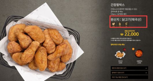 교촌에프앤비는 기존 ‘교촌윙’ ‘레드윙’ 등 ‘윙 시리즈’를 순차적으로 단종하고, 태국산 닭 부분육을 사용하는 ‘윙박스’를 출시했다. ‘윙박스’는 양념(2만3000원), 간장·레드·허니·후라이드(2만2200원) 등 총 5가지로 구성됐다. 교촌은 ‘윙박스’ 제품이 국내산을 태국산으로 바꾼 게 아니라 태국산을 쓰던 기존 점보윙 시리즈를 업그레이드해 선보인 제품이라는 입장이다.