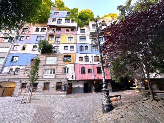 일러스트가 그림책 밖으로 튀어나온 듯한 건물은 오스트리아의 화가·건축가 프리덴슈라이히 훈데르트바서의 작품 ‘훈데르트바서 하우스(Hundertwasser Haus)’와 ‘쿤스트 하우스(Kunst Haus)’다. 훈데르트바서 하우스는 50가구 이상의 비엔나 주민이 거주 중인 공공임대주택이며, 쿤스트 하우스는 훈데르트바서의 작품을 전시하는 미술관·박물관이다.