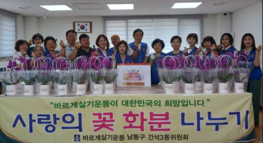 이날 전달된 난 화분은 간석3동 바르게살기운동위원회 위원 및 자생단체장 등 이 직접 화분을 꾸미고 정성껏 준비해 무더위 속에서도 경로당을 찾는 어르신들께 심리적 위안과 정서적 활력을 선사하여 많은 호응을 얻었다.
