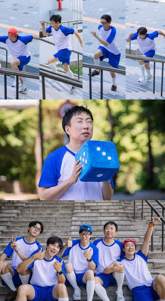 공개된 사진 속 난데없이 남산에서 계단 달리기를 하는 멤버들과 박명수의 모습이 포착돼 눈길을 끈다. 이를 악물고 계단을 질주하는 그들의 모습이 과연 어떤 미션을 하고 있는 중인지 궁금증을 끌어올린다.